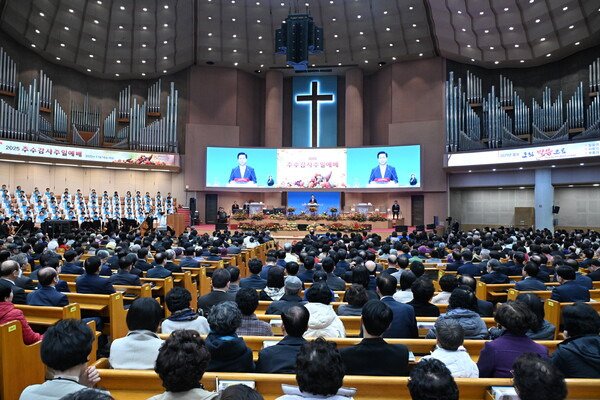 이날 예배에서 이영훈 위임목사는 시편 23편 1~3절을 본문으로 ‘절대 감사의 삶’이라는 제목의 말씀을 전했다. 이 목사는 하나님을 목자이자 인도자이며 공급자로 고백한 다윗의 신앙을 설명하며, 성도가 상황과 환경을 넘어 하나님의 은혜를 바라보는 믿음의 자세를 회복해야 한다고 강조했다. 이 목사는 “감사는 신앙의 기초이며, 기적을 여는 열쇠”라고 전하며, 어려움이 많은 시대일수록 신앙의 사람은 더 깊은 감사를 붙들어야 한다고 말했다. 또한 “감사로 살아갈 때 하나님께서 삶의 길을 인도하시며, 절망의 순간에도 새로운 문을 열어주신다”고 선포하며 성도들을 격려했다.