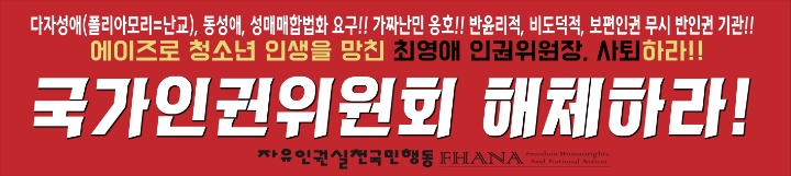 국민세금이 아깝다! 에이즈치료비 전액지원! 성윤리, 성도덕 말살시켜 청소년과 내 자녀 타락시키는 최영애 위원장, 즉각 사퇴하라!