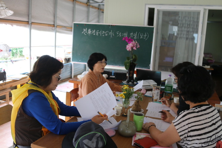 친환경도시농업예비지도사들이 머리를 맞대고 현장 중심의 텃밭프로그램 작성을 고심하고 있는 모습
