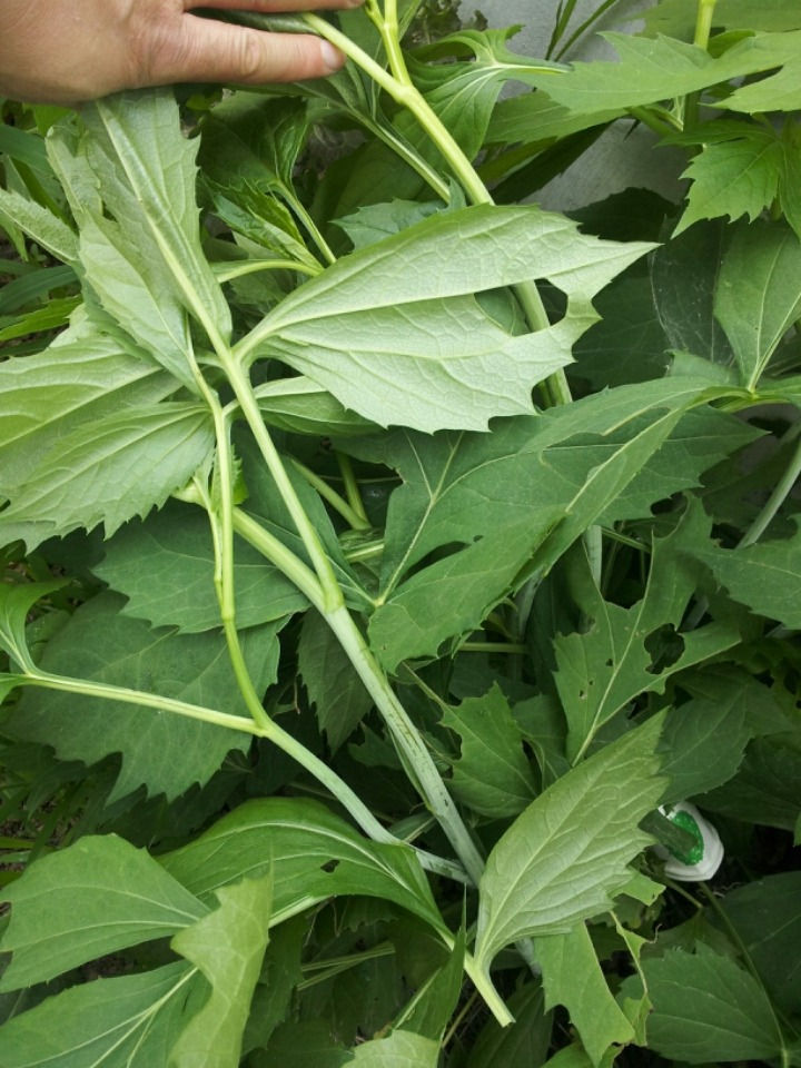 어릴적에는 신선초와 비슷하며 쌈용으로 좋습니다~ 삼잎국화입니다 돼지감자와 비슷하게 노란꽃이 핀답니다