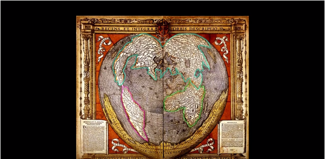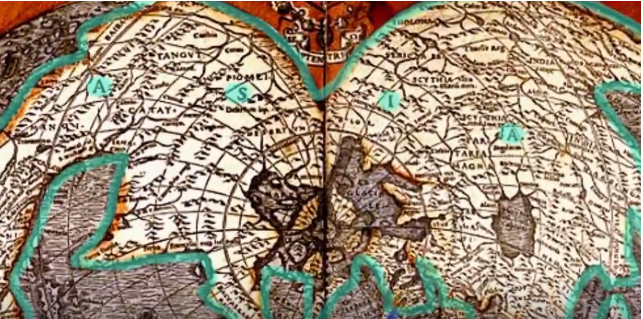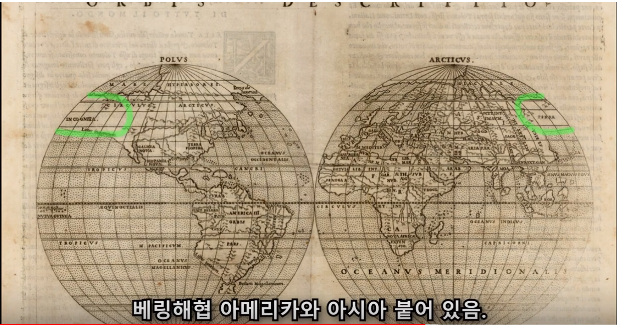 해당 영상에서 아메리카와 아시아 대륙이 이어져 있는 다양한 고지도를 보여줍니다.그중 아메리카가 예전에는
