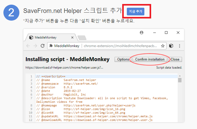 아래의 링크로 접속합니다. https://ko.savefrom.net/userjs-for-google-chrome.php 2번 영역에서 [지금추가] 링크를 클릭하여 스크립트 추가 페이지로 이동합니다 |