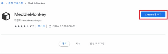 1.크롬을 실행하여 MeddleMonkey 확장 프로그램을 추가합니다.