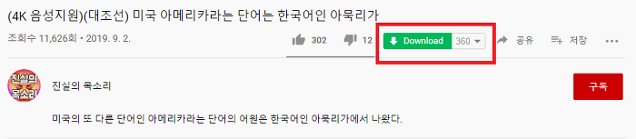 유튜브 시청중에 별도의 프로그램을 실행하거나 다운로드를 가능하게 하는 웹사이트로 이동 할 필요 없이 시청중인 페이지에서 직접 다운로드 하는 방법입니다.