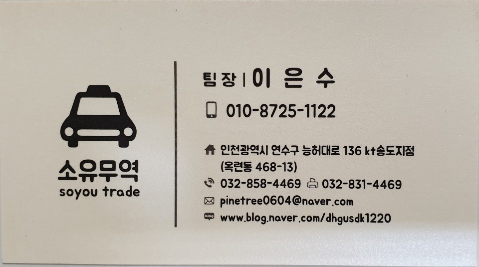 안녕하세요. 저는 중고차 수출업에 종사하고 있는 소유무역 이은수팀장 입니다.