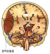 두개골과 지주막 사이에 존재하는 경막에 출혈이 생기는 것으로 이 경막내외의 출혈은 출혈이 생기는 위치에 따라 구분하는데 두개골과 경막사이에 출혈이 발생할 경우를 경막외혈종이라고 한다.