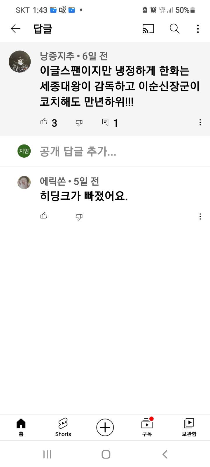이순신장군은 수군과 나라지키고 싸우느라 바쁘단다.히딩크감독은 야구 몰라!