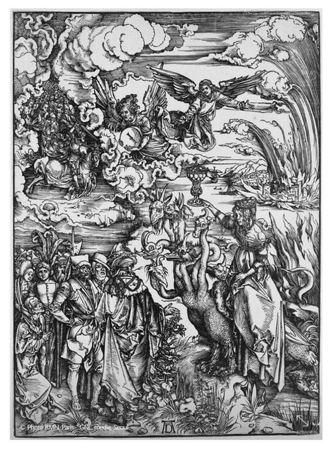 프랑스 루브르 박물관에 걸린 알브레히트 뒤러(Albrecht-Dürer)의 작품 . 요한계시록의 영감을 받아 만든 목판화다. (1496년)