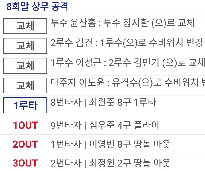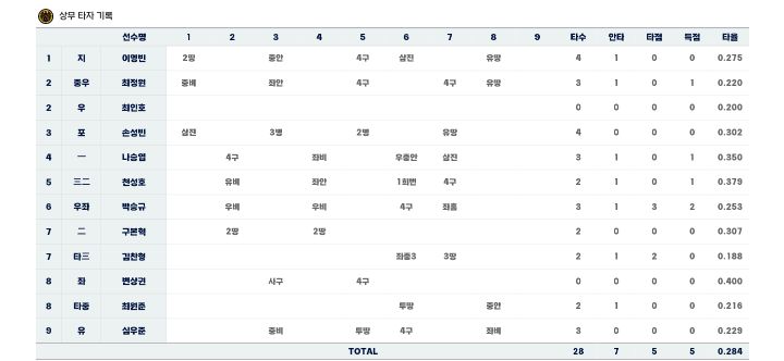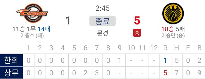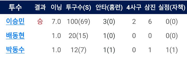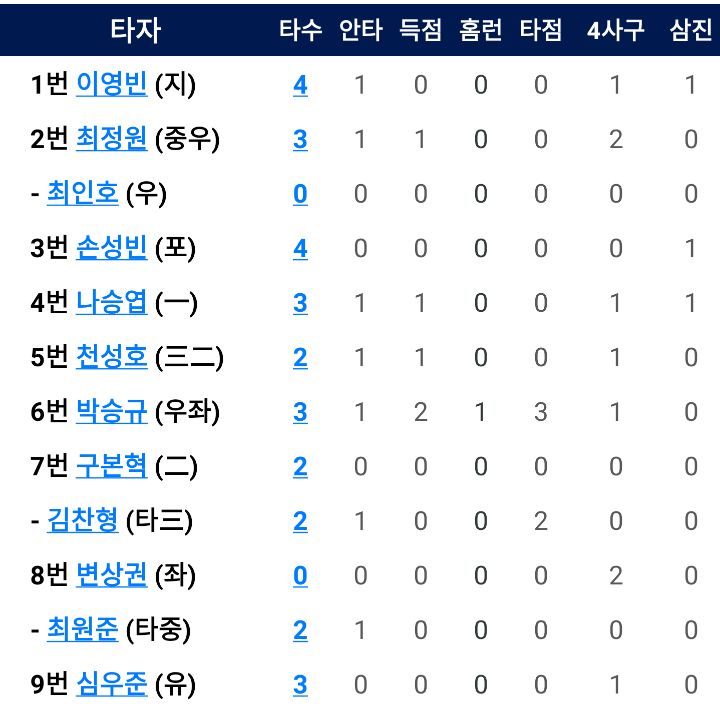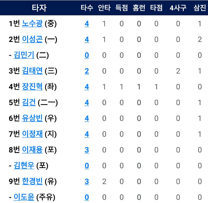 홈런: 박승규2호(7회3점 윤산흠) 장진혁3호(9회1점 박동수)