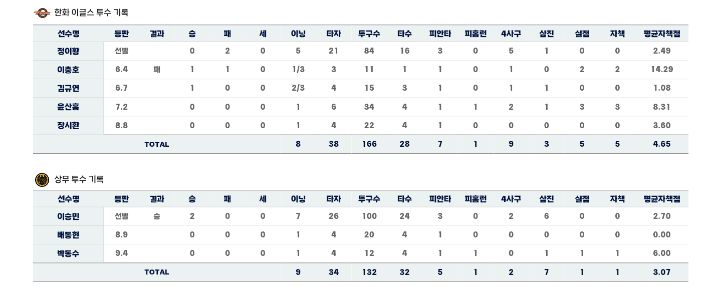 폭투: 정이황(5회) 윤산흠(7회) 장시환(8회)