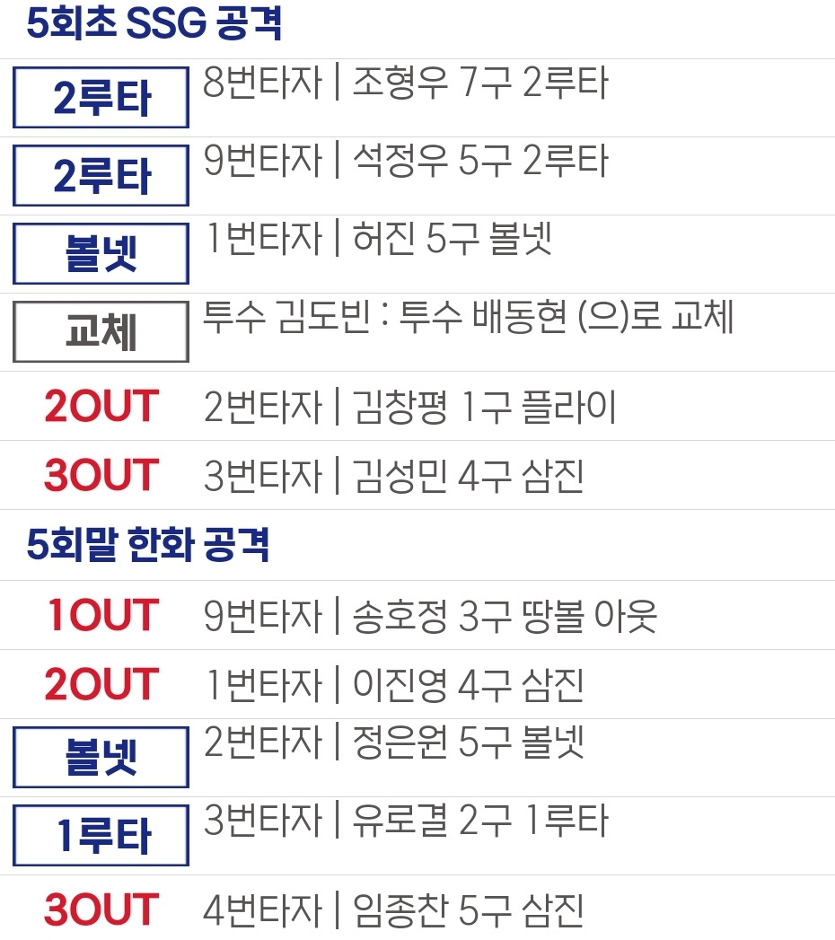 2루타:유로결(3회) 조형우(5회) 석정우(5회)