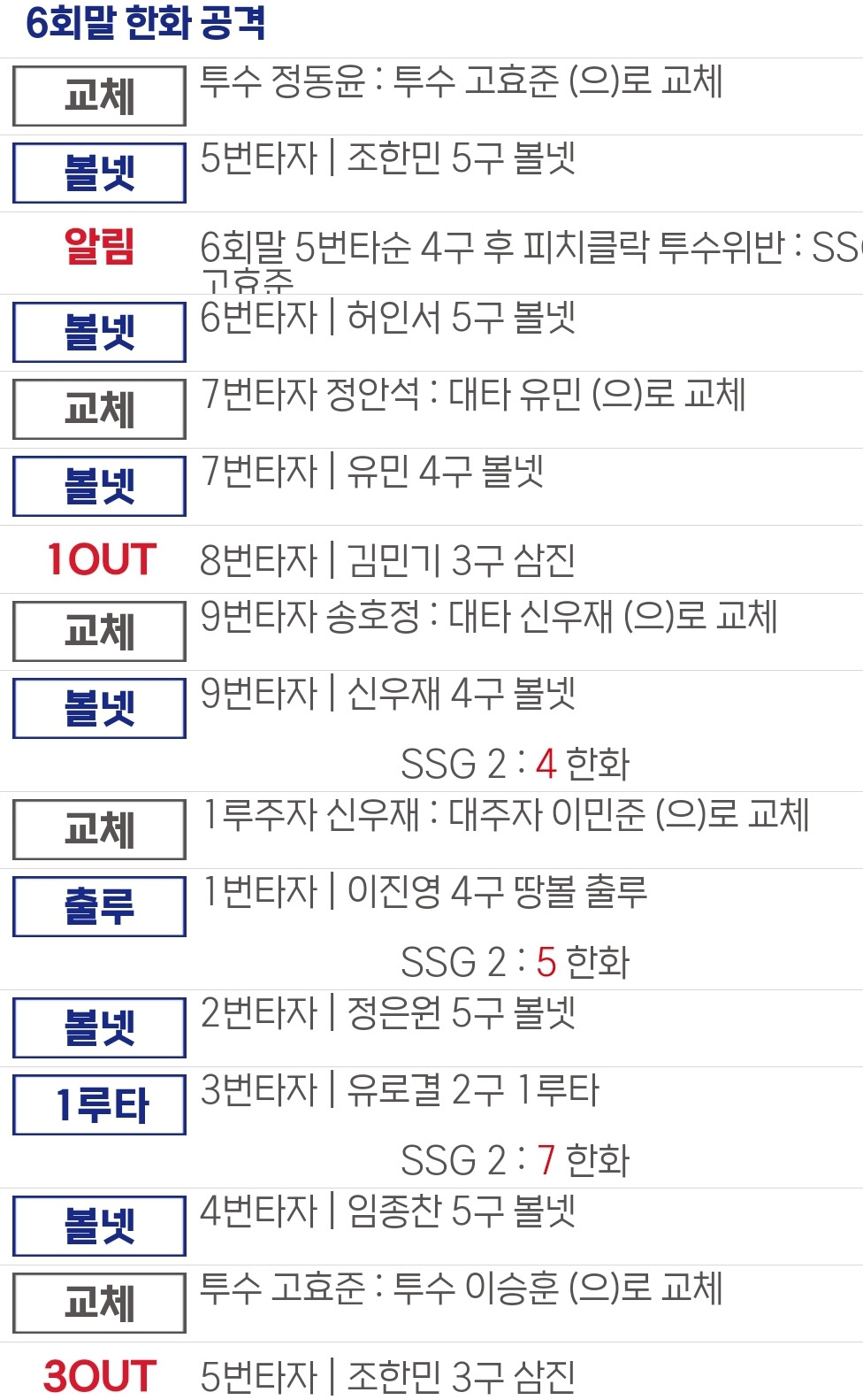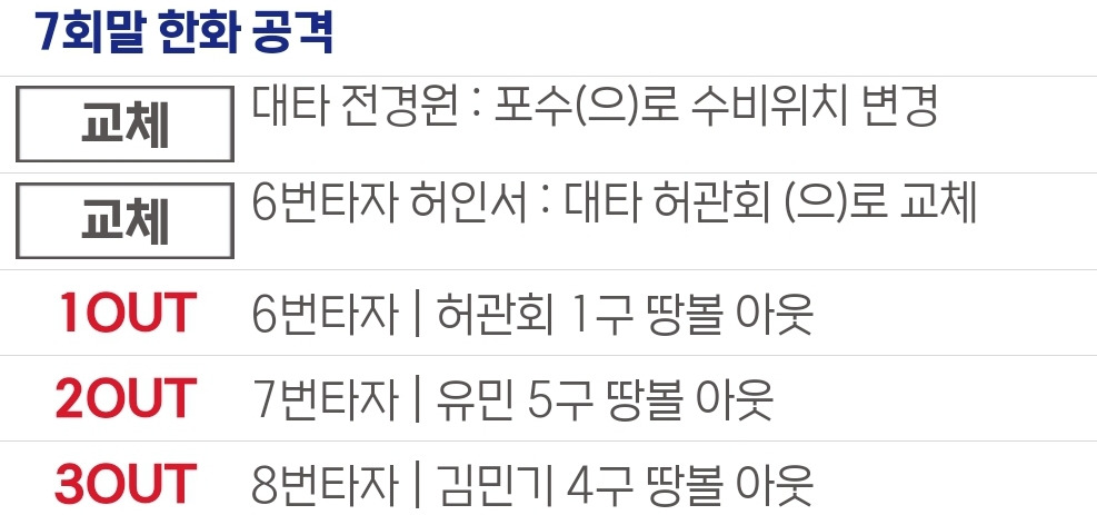 실책:허인서(2회) 백준서(6회) 허진(6회)