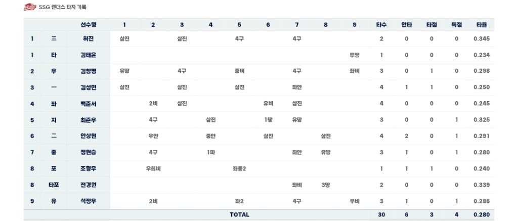 SSG2군 타자기록