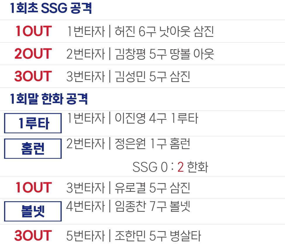 병살타:조한민(1회)