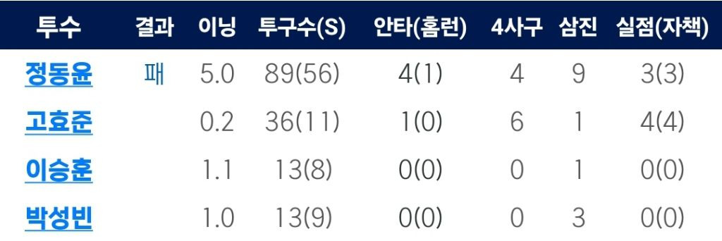 폭투:정동윤(2회) 고효준(6회)