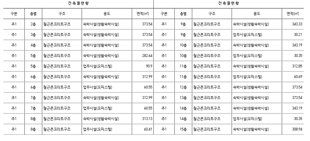 여기가 오피스텔인지 / 숙박시설인지 일일히 세대원분들께