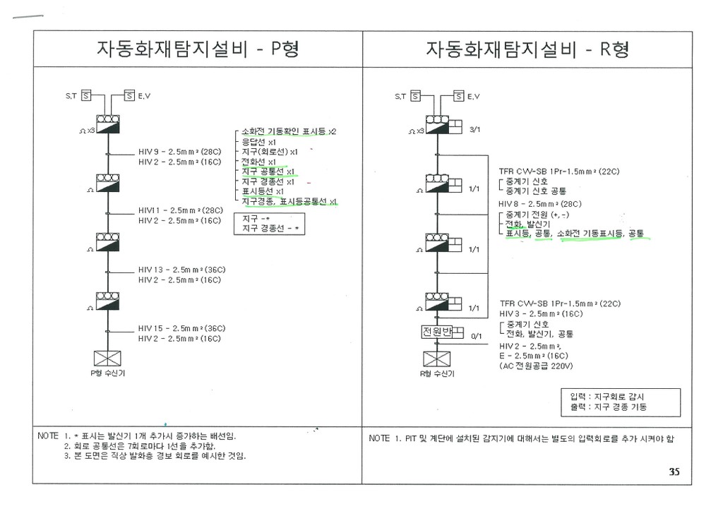 R형은 신호2, 전원2, 전화, 발신기(응답), 표시등, 공통 이렇게 8선이 필요하고 소화전기동표시등 2선이 별개로 같이 올라갑니다. 아마, 소화전기동표시등1에 공통1이라고 공통 2선이 중복된다고 생각하시는 모양인데..