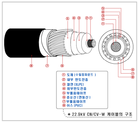 2) 절연체 : 전압에 견디고 전류가 도체 외부로 새어나가는 것을 방지하기 위한 피복(XLPE)