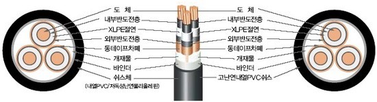전력케이블은 일반적으로 도체, 절연체, SEATH 및 외장으로 구성된다.