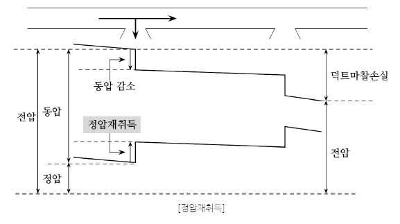 4. 정압재취득법 (靜壓再娶得法: Static pressure regain method) :