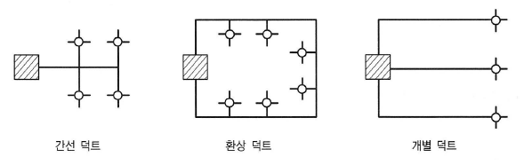 1) 간선덕트 방식: 천장 취출, 벽 취출 방식 등