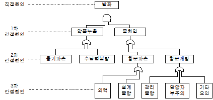 적 모델인 결함수 Diagram을 작성하여 장치이상이나 운전자실수의 상관관계를 도출하는 기법이다.