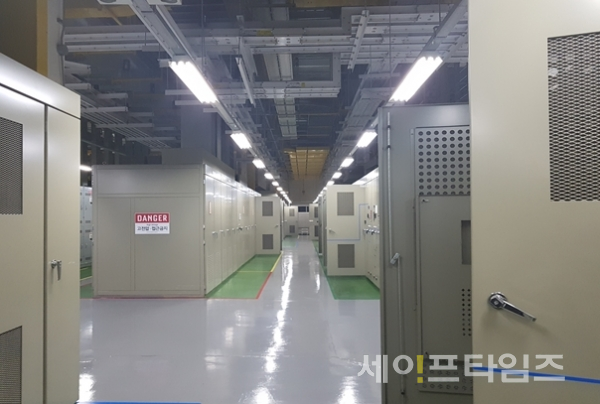 ▲ 한 건물 전기실에 설치된 가스계 소화설비.