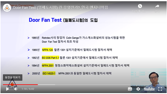 1) NFPA, EPA 에서는 저비용, 연속사용기능 및 환경오염방지를 감안하여 Door Fan Test 권장