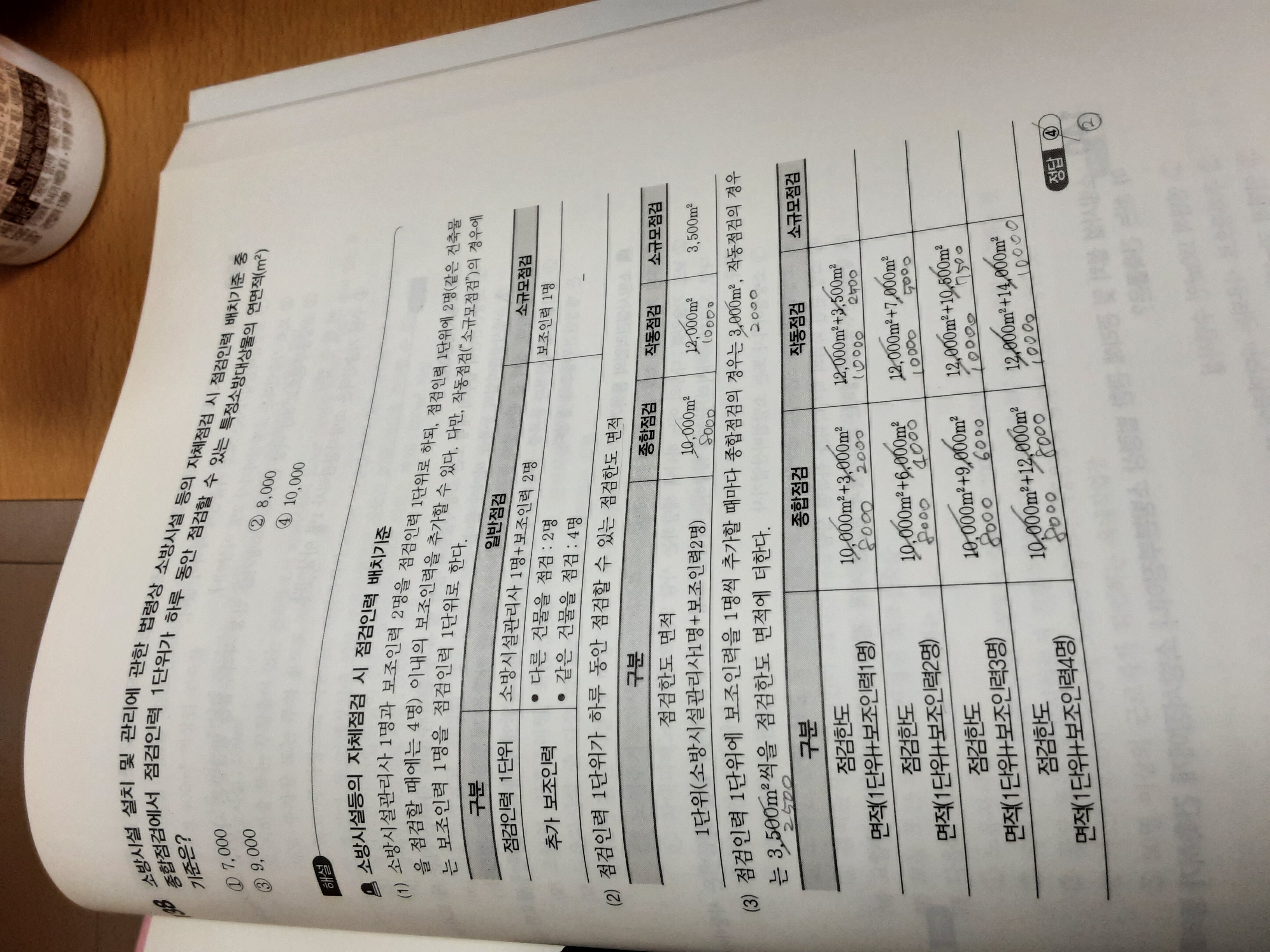종합점검은 8000제곱미터, 작동점검은 10000제곱미터이고 보조인력1명 추가될때마다 종합은 2000제곱미터, 작동은 2500제곱미터 증가 맞죠?