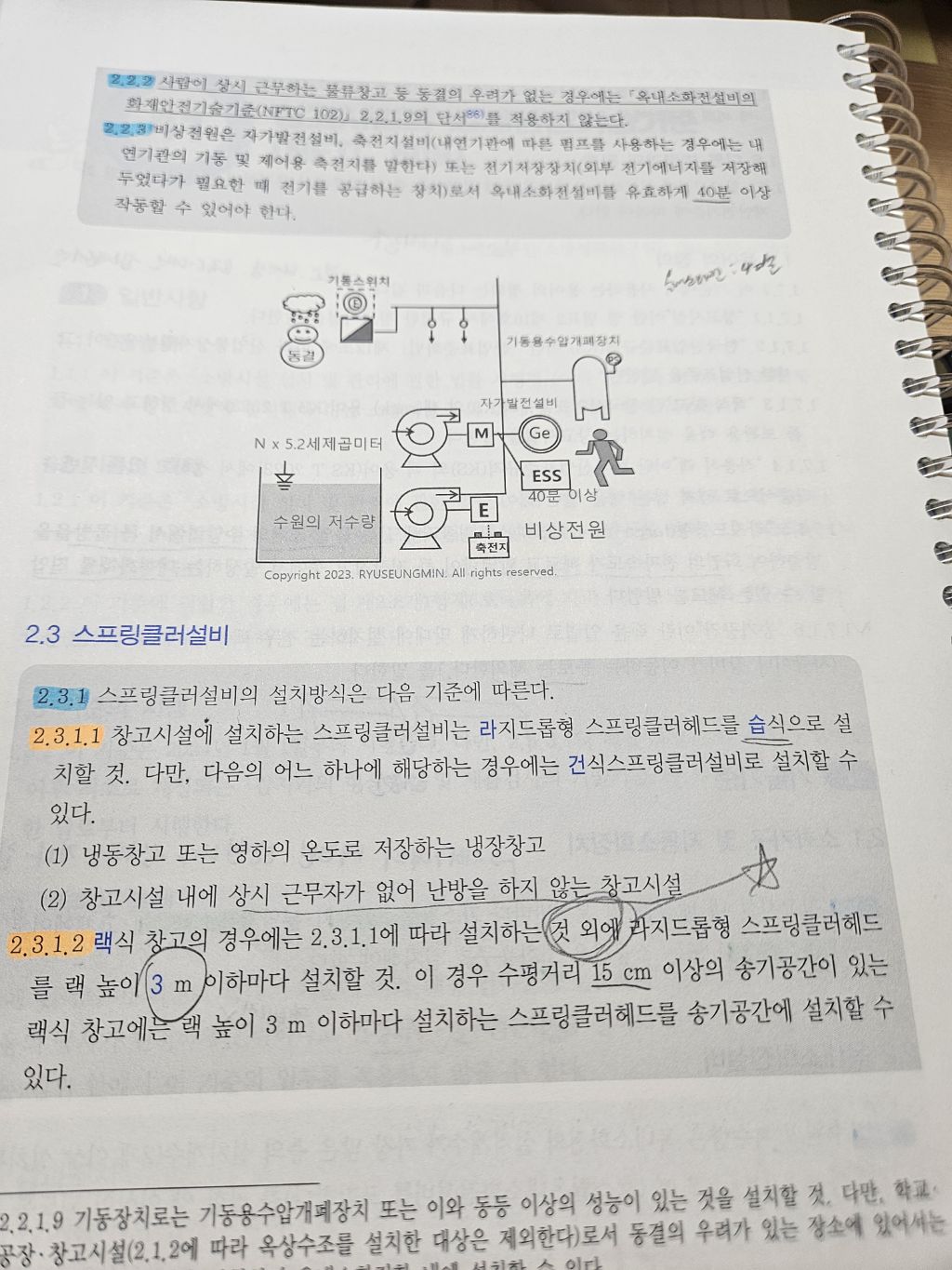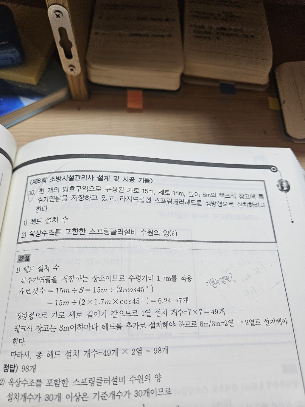 작성자한장희 작성시간 26.03.15 2.3.1.1에 따른 천장에 설치하는 기본개수가 49개이고, 거기에 추가로 3m이하마다 설치하는 것이므로 3m부분의 랙에 49개를 더 추가한 개념으로 봐야하지 않을까요.