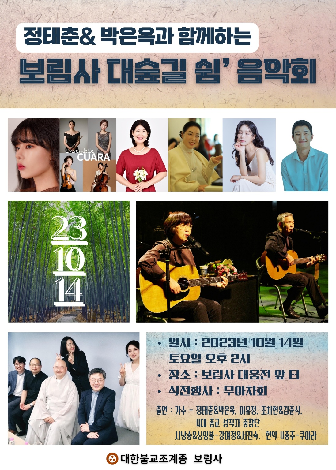 정읍 보림사 대숲길 쉼' 산사음악회 소식입니다.