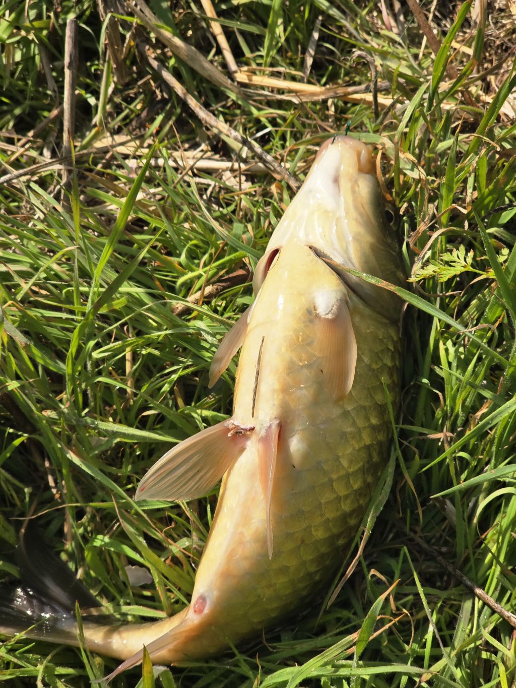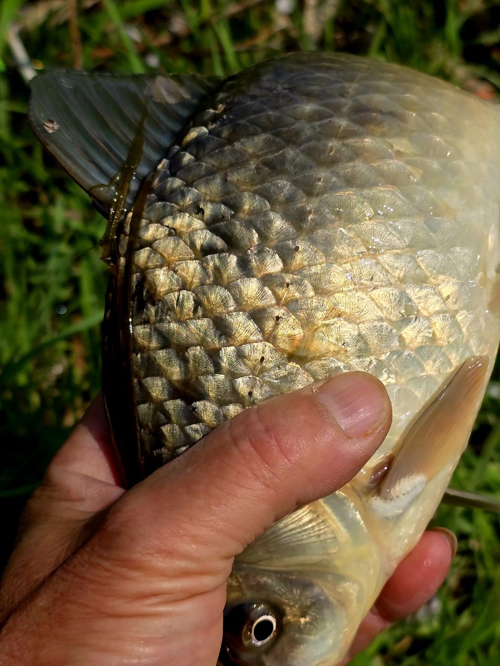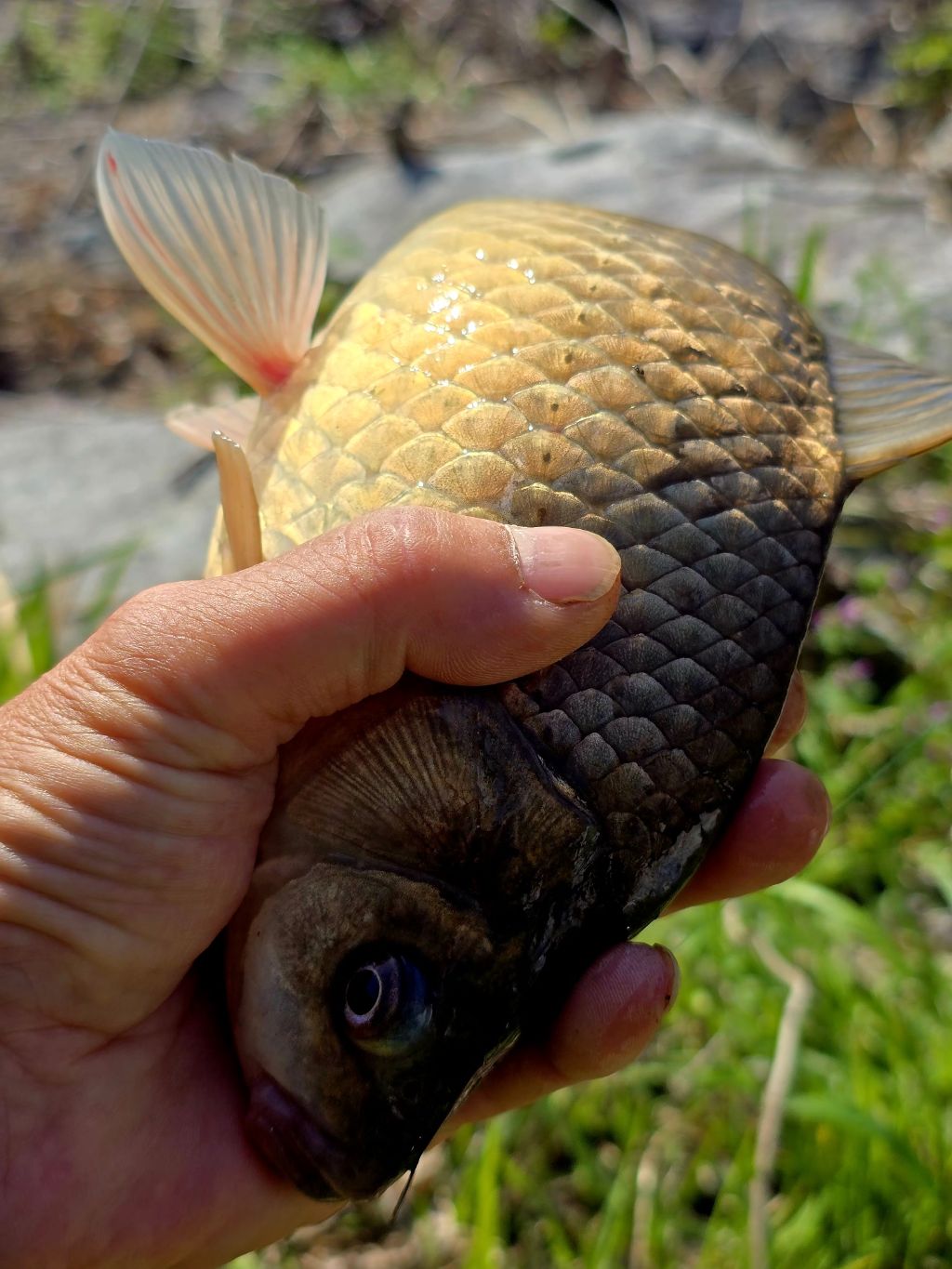 붕어가 물고 늘어지네요