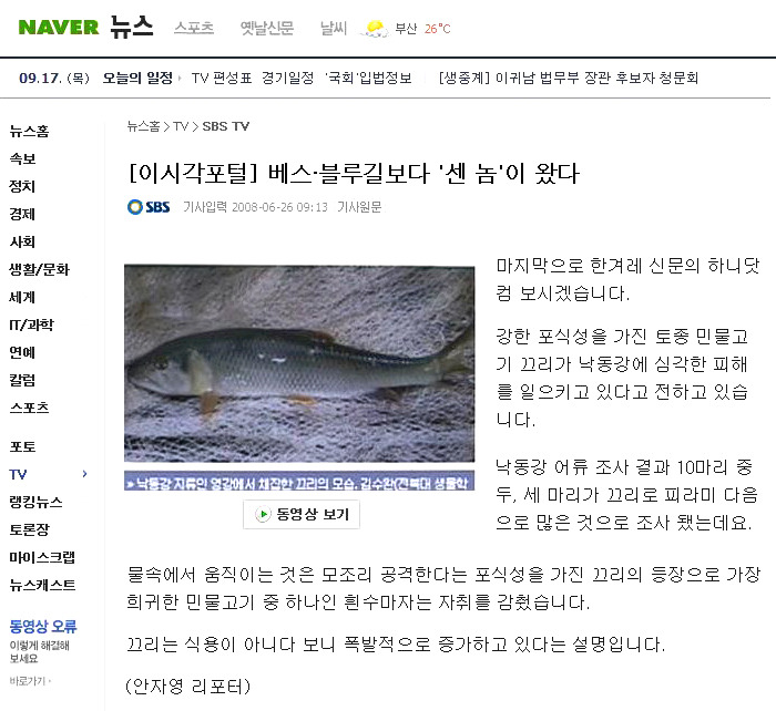 부터 한국 사람들은 저를 미워하기 시작하더군요 원래 낚시꾼들이야 루어로 저희들을 현혹시켜 오래 전부터 천적이긴 하지만