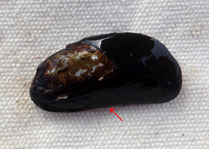 도끼조개는 패각의 아래쪽이 오목하게 들어가 있어서 다른 종류의 민물조개들과 구분이 됩니다.