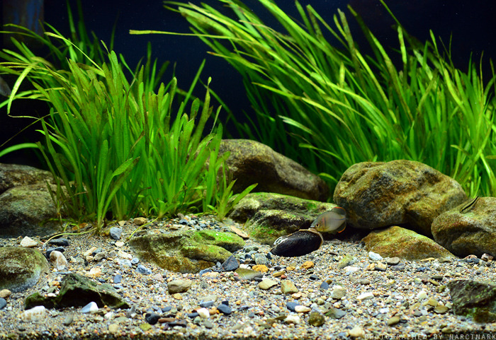 부분적으로 돌과 수초에 갈조가 끼어있긴 하지만 전체적으로 녹조류들이 돌멩이에 잘 활착하였습니다.