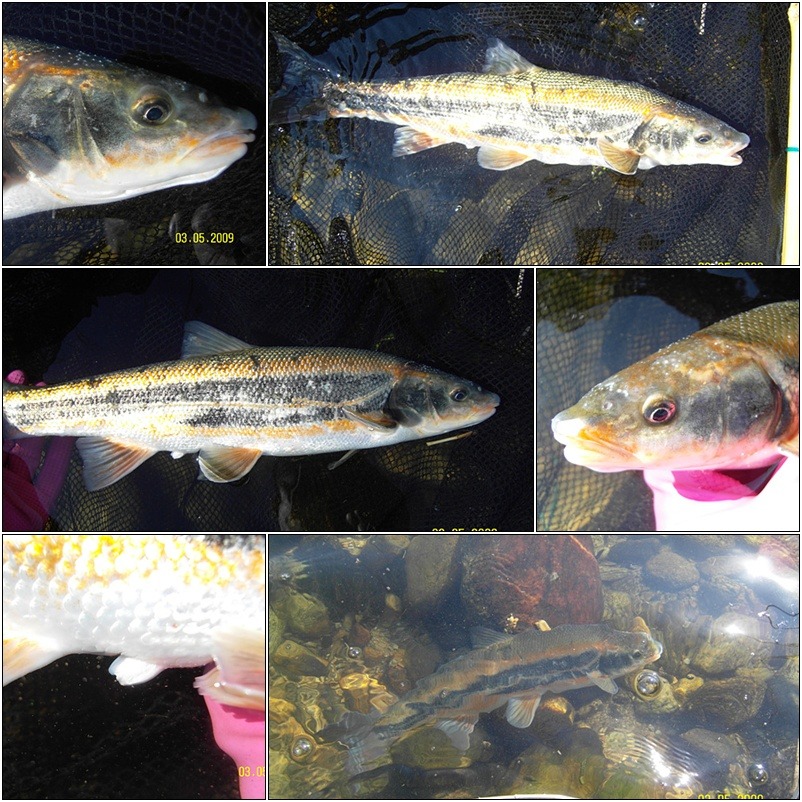 천의 중류쯤 되는 곳에서 황어 한마리를 채집할 수 있었습니다.