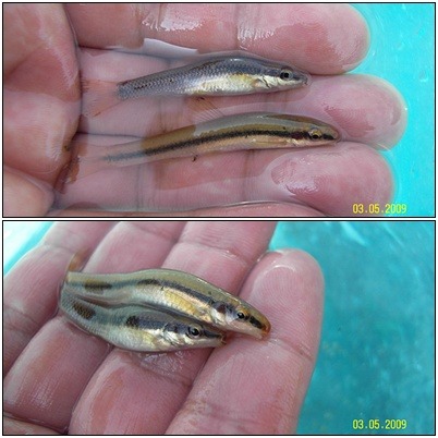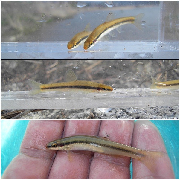 한 족대에 함께 채집된 돌고기와 가는돌고기를 같이 찍어봤습니다.