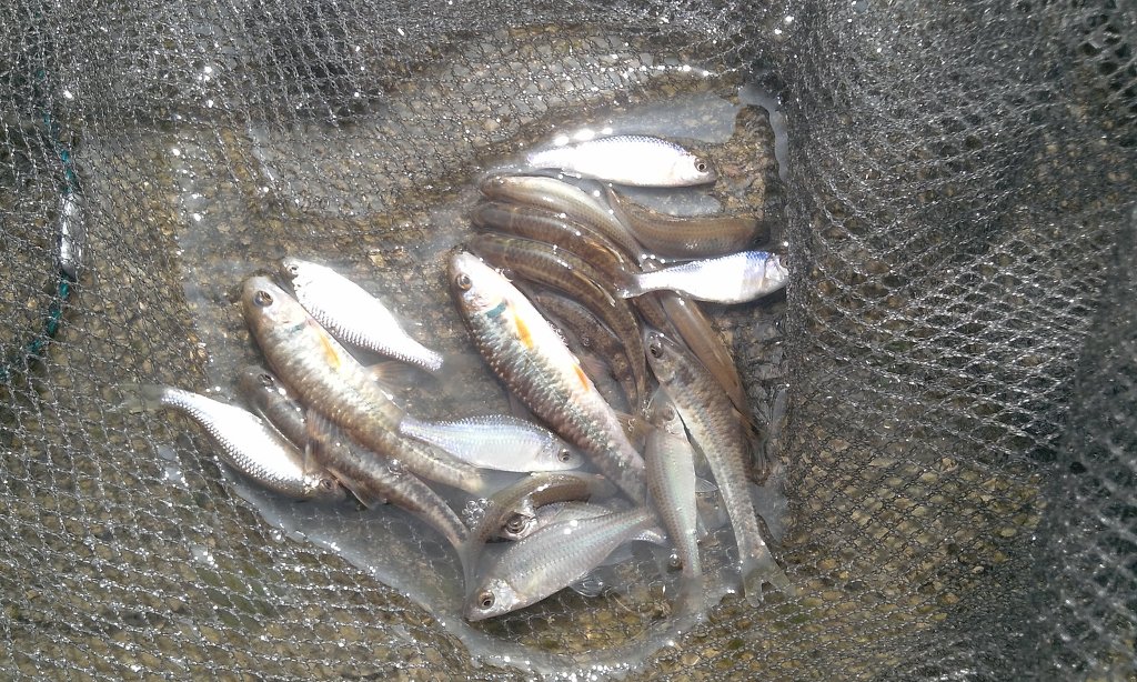 두어시간 참중고기에 집중한 결과. 재밌는 점은 꼭 참중고기 한마리 잡을때 줄납자루도 한두마리씩 같이 잡혔다는 것.