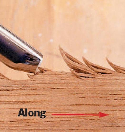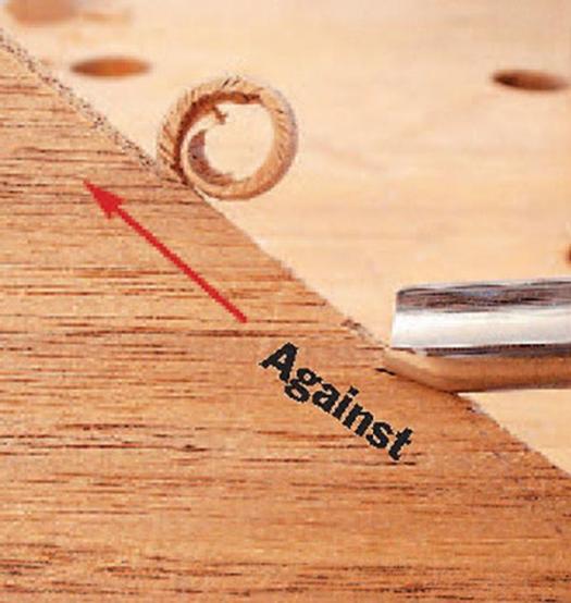 In the context of woodworking or cutting meat, "along the grain" means cutting parallel to the fibers, while "against the grain" means cutting perpendicular or at an angle to the fibers.