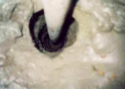 시멘트액을 주입 하다보면 시멘트액이 지표로 역분출하는 경우가 생길 것입니다. 이때가 역분출할 때 주변지반상황을 잘 보세요. 역분출하는 구간이 지금 관입해 놓은 소공에서 흘러나오는 경우가 있고, 지금 투입되고 있는 소공과는 한참이나 떨어진 소공이나 지표면에서 흘러나오는 경우가 있을 겁니다. 이렇게 시멘트액이 투입되는 시간이 소공마다 다 다를 것입니다.