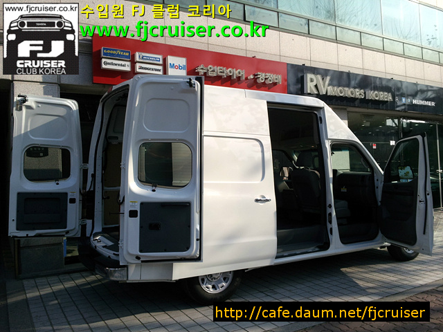 와이드 오프닝 리어 도어의 모습입니다. 무려 243도나 스윙이 되어 화물 상하차가 상당히 자유롭습니다.^^