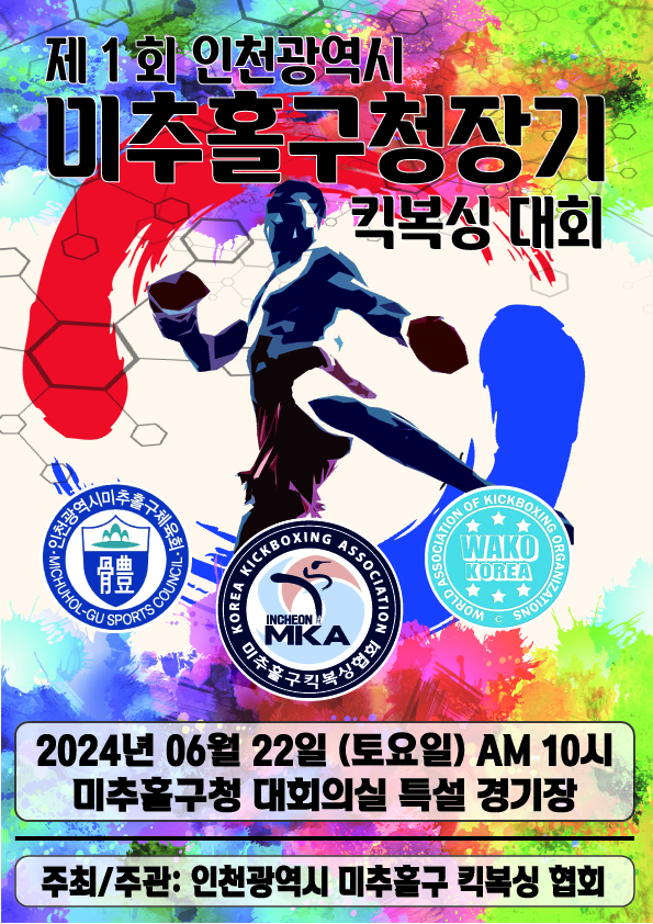 제1회 인천시 미추홀구 구청장배 킥복싱대회 출전 신청 부탁 드립니다. 작성자흑표범|작성시간24.05.23|조회수231 목록 댓글 0 글자크기 작게가 글자크기 크게가 제1회 인천광역시 미추홀구청장배 킥복싱대회 세부개요서.hwp886.50KB알림 : 오는 6월 22일(토) 제1회 인천시 미추홀구 구청장배 킥복싱 대회가 개최 됩니다. 자세한 대회 공지는 위 파일을 참고해 주시고 많은 참여와 출전 부탁 드립니다. 첨부파일첨부된 파일이 2개 있습니다. jpg 파일 KakaoTalk_20240510_174020415.jpg 다운로드 hwp 파일 제1회 인천광역시 미추홀구청장배 킥복싱대회 세부개요서.hwp 다운로드 다음검색 현재 게시글 추가 기능 열기 북마크 공유하기 신고 센터로 신고 댓글 댓글 0 댓글쓰기 답글쓰기 댓글 리스트