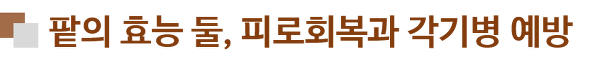 팥은 곡류 가운데 비타민 B1이 가장 많이 들어있는 식품이다. 우리 몸에 비타민 B1이 부족해지면 당질대사가 잘 이루어지지 않아 피로물질이 쌓이게 되는데, 이때 팥을 충분히 섭취하면 피로의 원인이 되는 당질 연소 찌꺼기의 양이 줄어들어 몸의 피로를 줄일 수 있다. 팥은 비타민 B1 이외에도 비타민 A와 B2, 칼슘, 인, 철분, 식물성 섬유 등이 많이 들어있어 영양적인 균형도 뛰어나다.