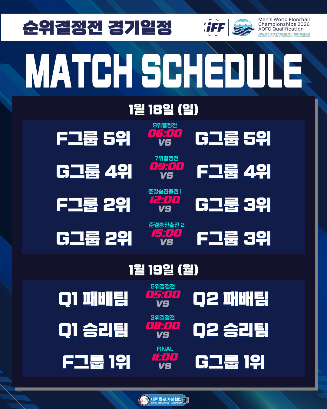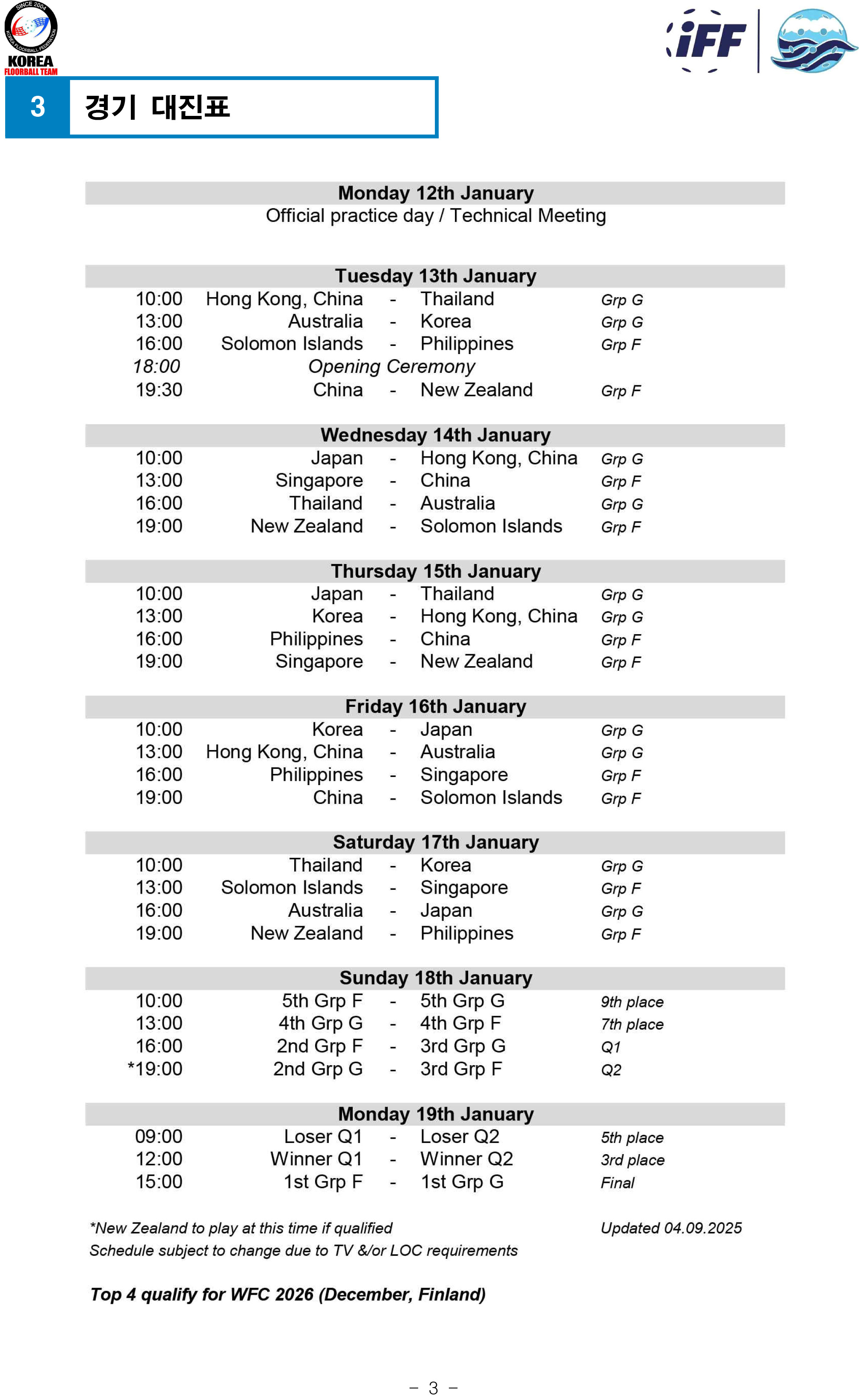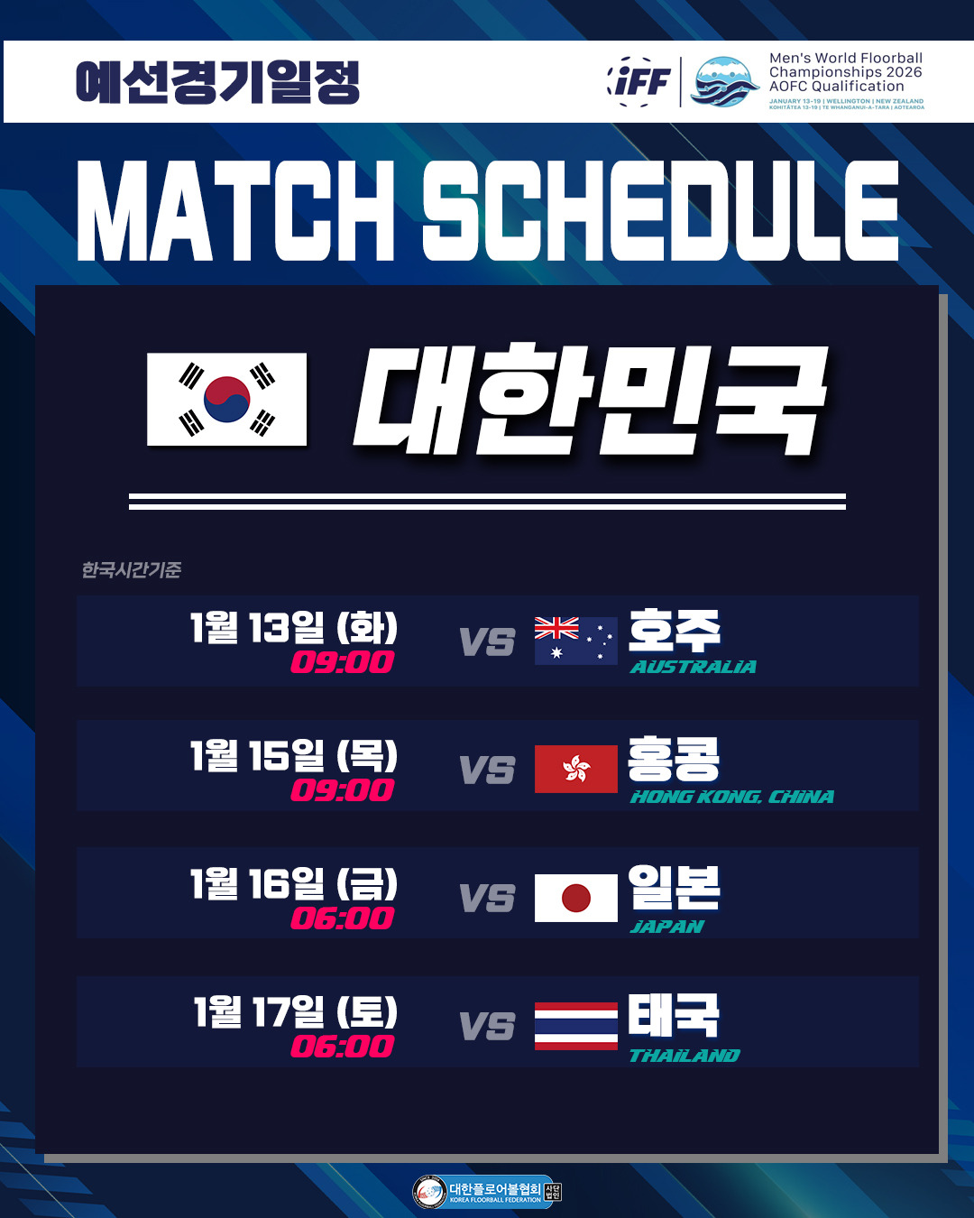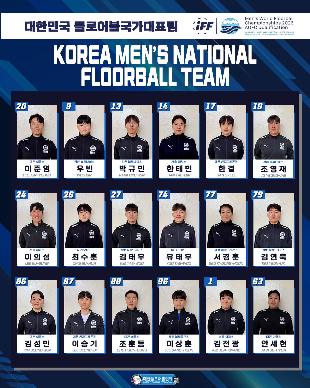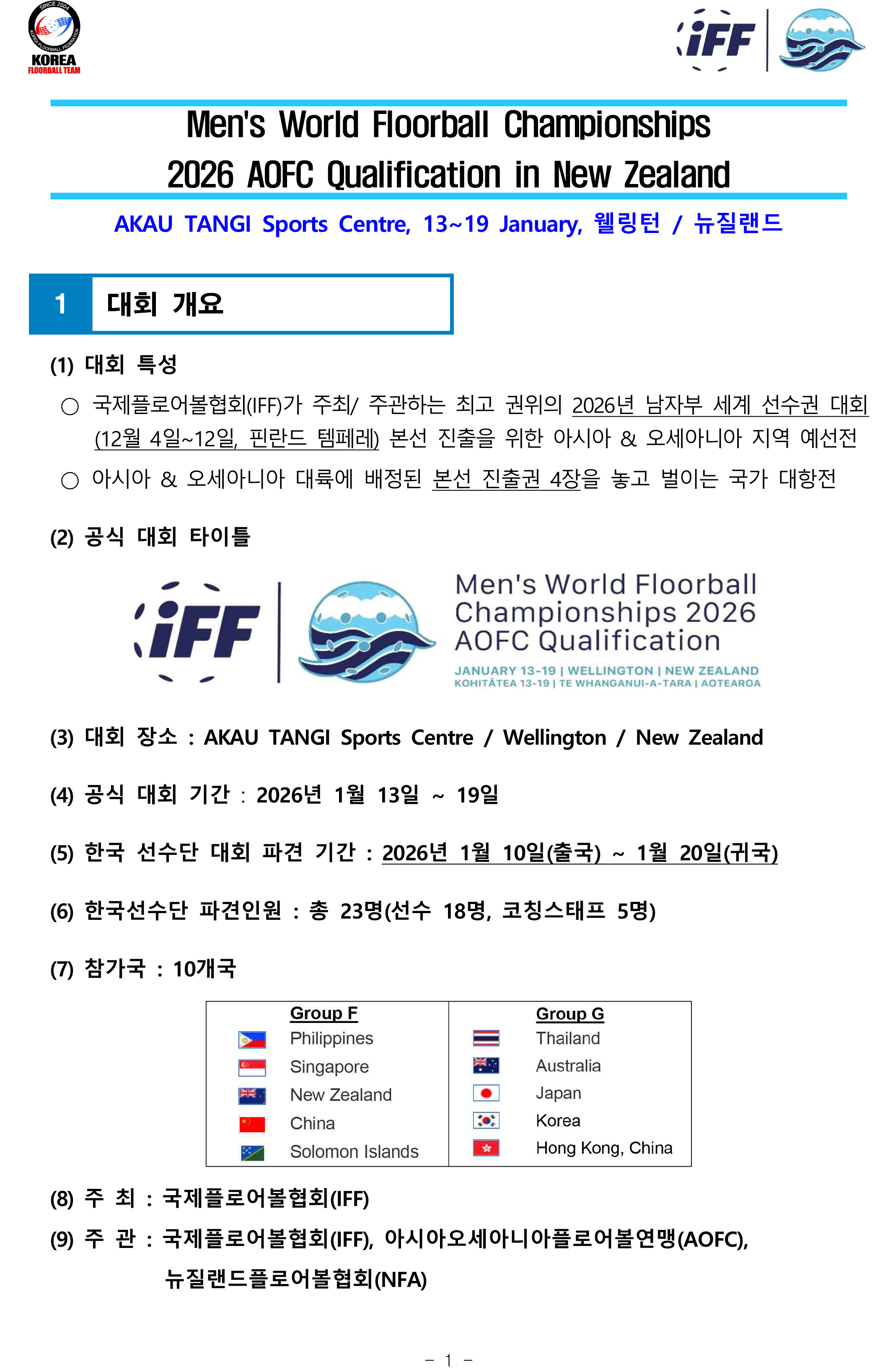 2026년 세계남자선수권 대회 아시아&오세아니아 예선전 대한민국 선수단 및 경기일정 작성자floorball|작성시간25.12.24|조회수21 목록 댓글 0 글자크기 작게가 글자크기 크게가 다음검색 현재 게시글 추가 기능 열기 북마크 공유하기 신고 센터로 신고 댓글 댓글 0 댓글쓰기 답글쓰기 댓글 리스트