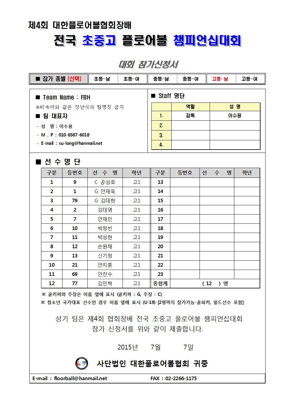 2015 협회장배 고등부 남자 3 - 쓰레빠(함안고) 작성자floorball|작성시간15.07.08|조회수154 목록 댓글 1 글자크기 작게가 글자크기 크게가 다음검색 현재 게시글 추가 기능 열기 북마크 공유하기 신고 센터로 신고 댓글 댓글 1 댓글쓰기 답글쓰기 댓글 리스트 작성자공성호 | 작성시간 15.07.12 팀 이름 "쓰레빠" 로 변경 부탁드립니다. 댓글 전체보기