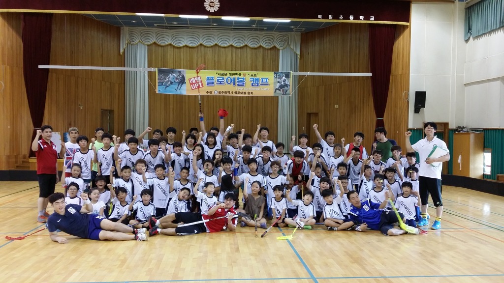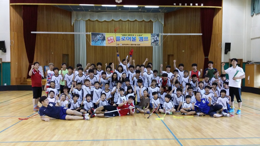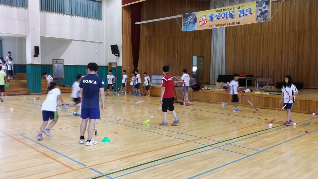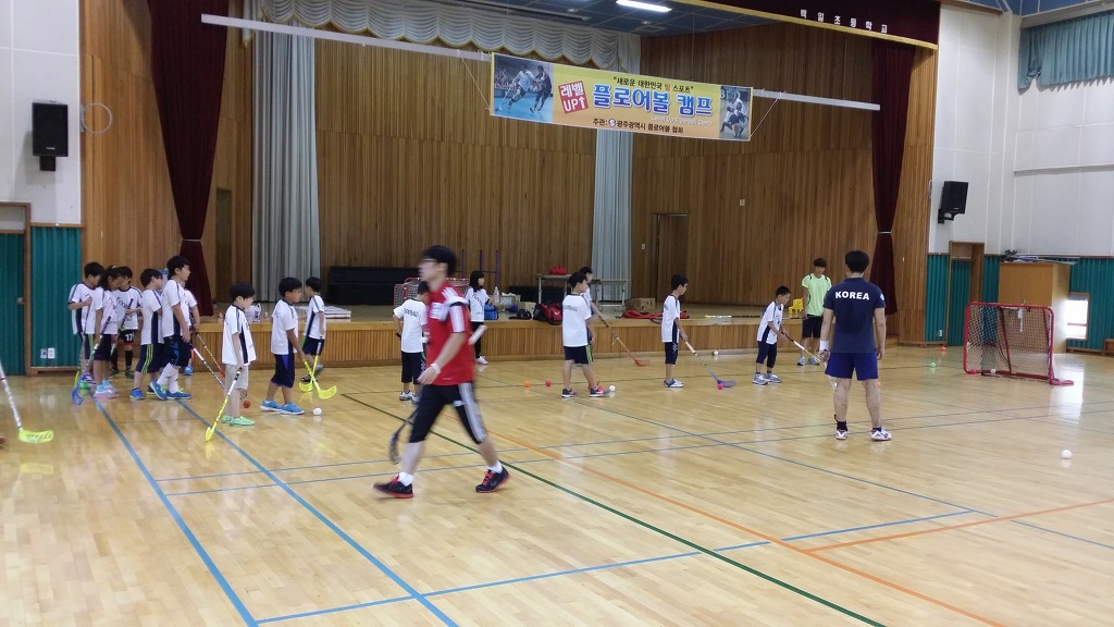 8월23일 제2회 레벨업 플로어볼 캠프가 백일초강당에서 있었습니다 50명 정원에 65명이 접수하여 성황리에 캠프를 마쳤습니다 아이들에게 플로어볼의 재미를 느끼게해주는 하루였던것같아 힘든줄 모르고 아이들과 같이 즐겼던것 같습니다 물질만 보고 시작 했다면 아마 여기까지 오지 못했던것 같습니다 플로어볼에 대한 열정으로 수고해주신 광주협회 선생님들 감사합니다.