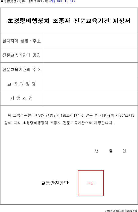제목 : 초경량비행장치교육원 설립안 (드론 국가기술자격증)