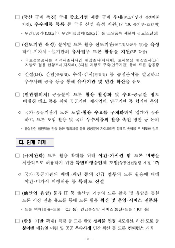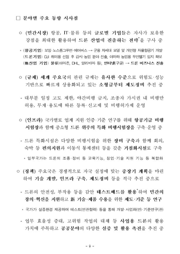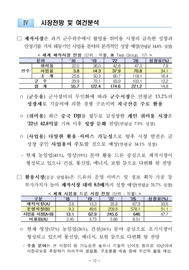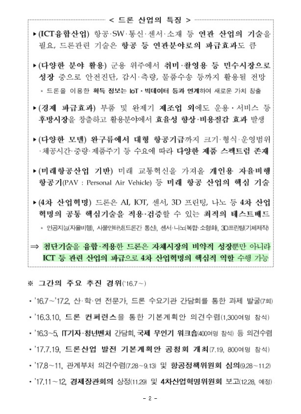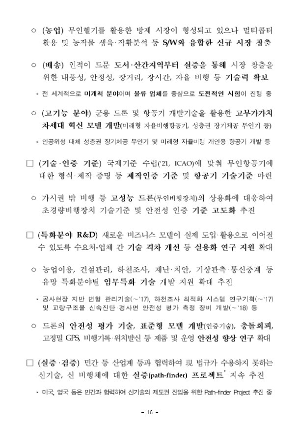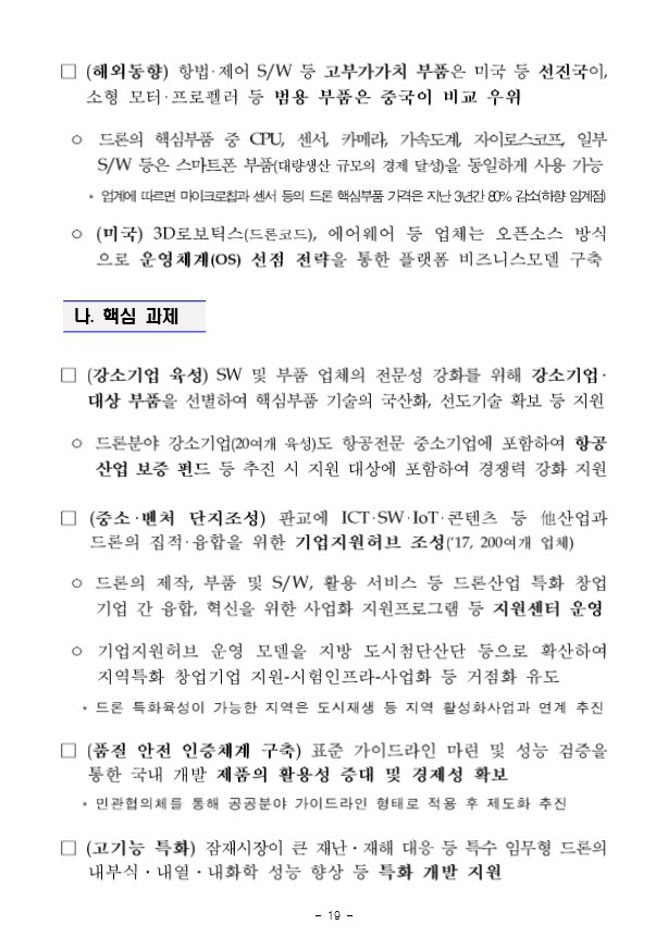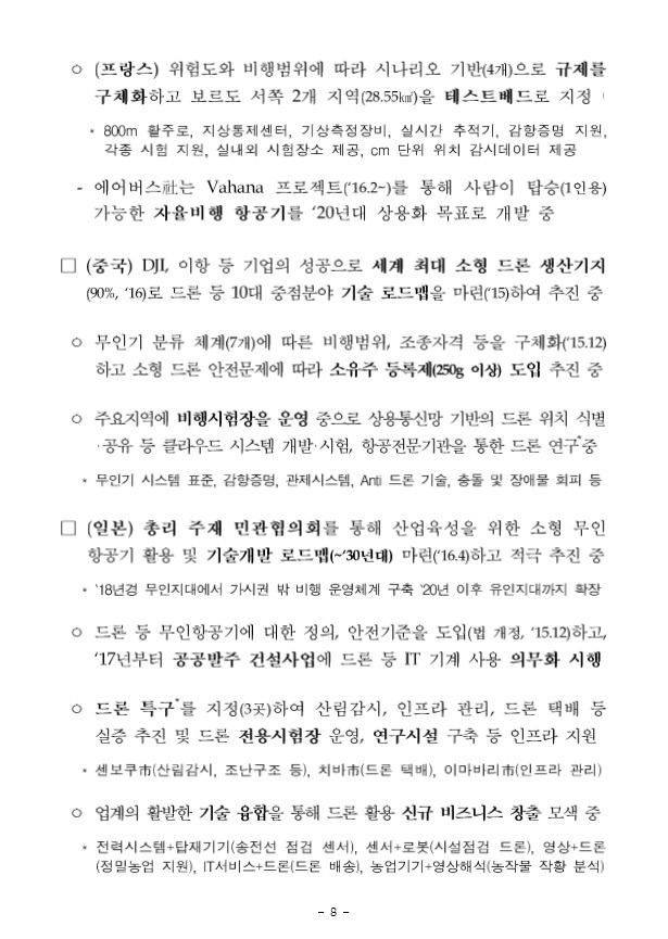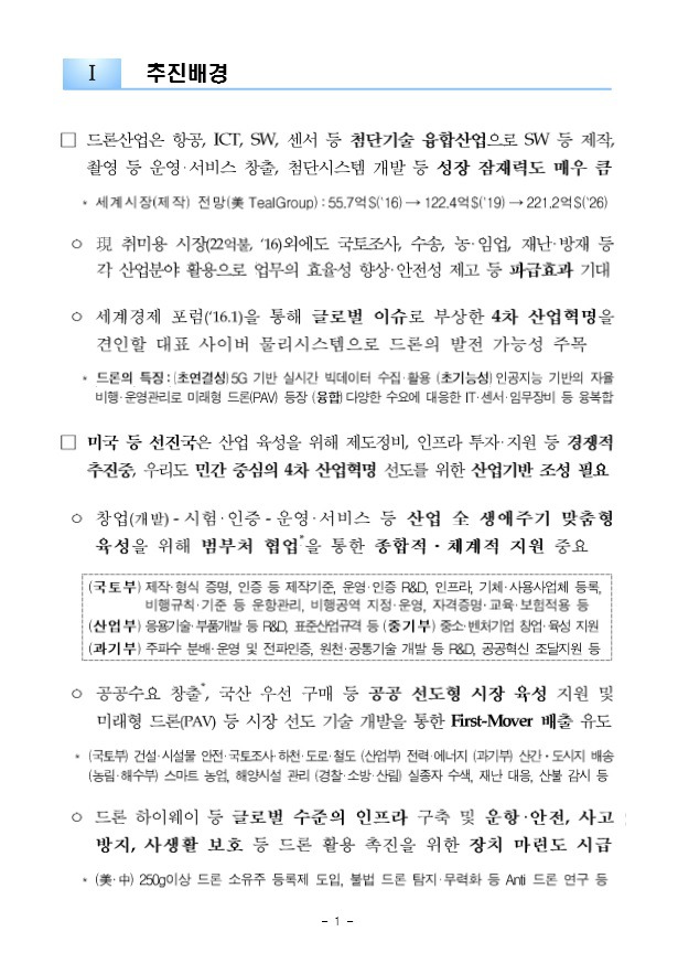 드론산업 발전 기본계획[안] 정부관계부처 합동 (2017~2026) 작성자에프원항공요트|작성시간17.12.24|조회수548 목록 댓글 0 글자크기 작게가 글자크기 크게가 다음검색 현재 게시글 추가 기능 열기 북마크 공유하기 신고 센터로 신고 댓글 댓글 0 댓글쓰기 답글쓰기 댓글 리스트