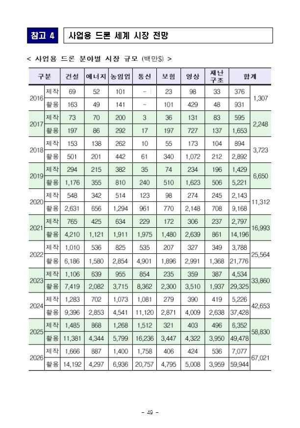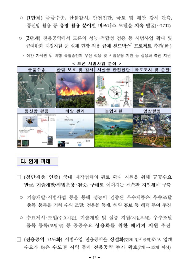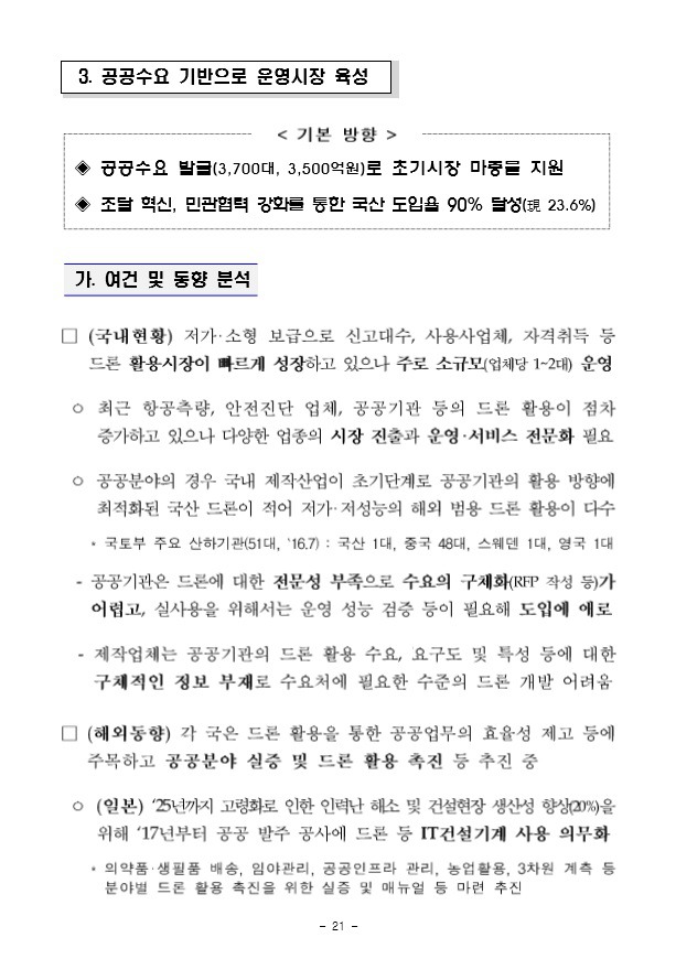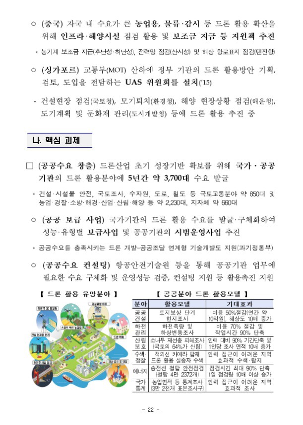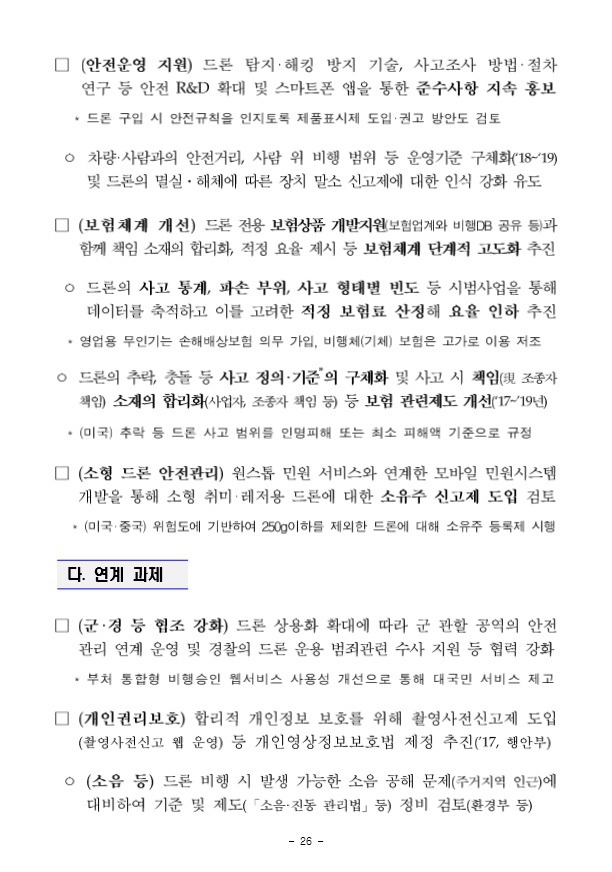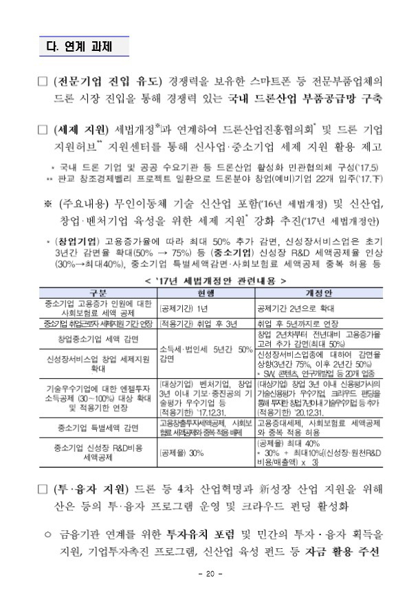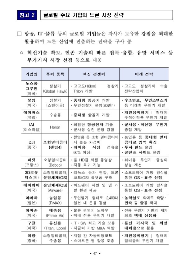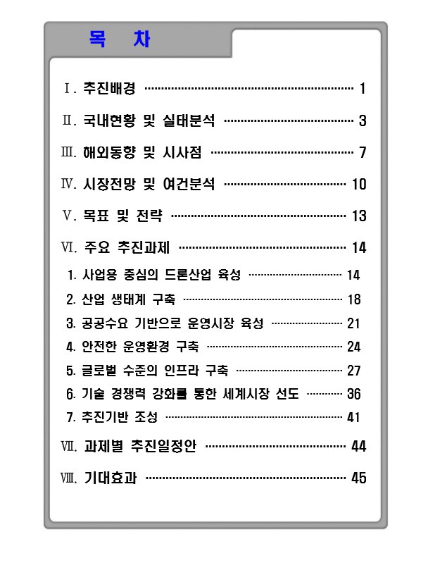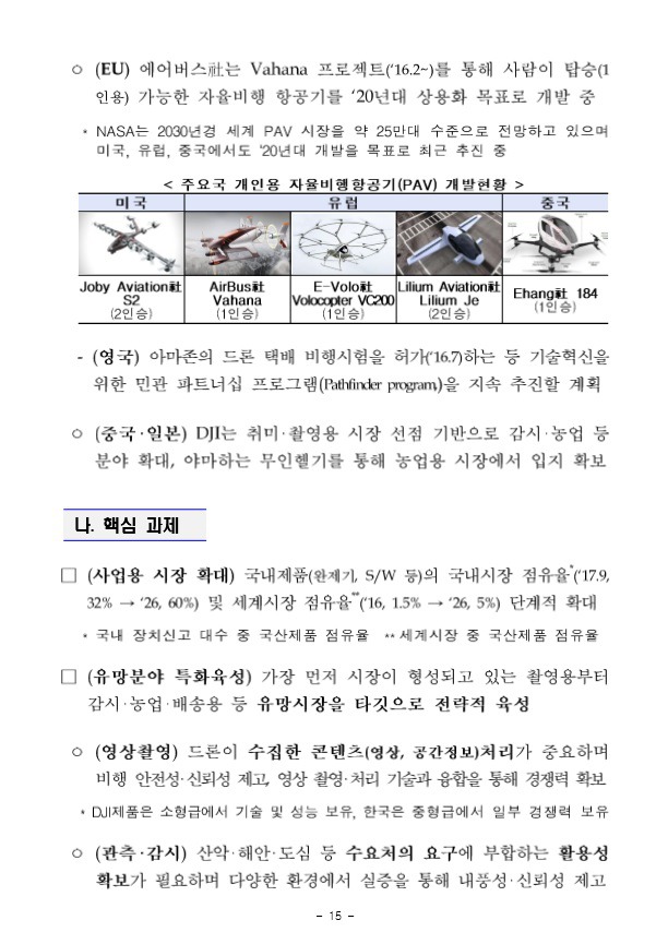 드론산업 발전 기본계획[안] 정부관계부처 합동 (2017~2026) 작성자에프원항공요트|작성시간17.12.24|조회수548 목록 댓글 0 글자크기 작게가 글자크기 크게가 다음검색 현재 게시글 추가 기능 열기 북마크 공유하기 신고 센터로 신고 댓글 댓글 0 댓글쓰기 답글쓰기 댓글 리스트
