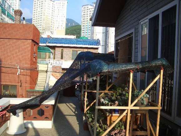 이층 난간에 야무지게 묶었습니다. 그리곤...